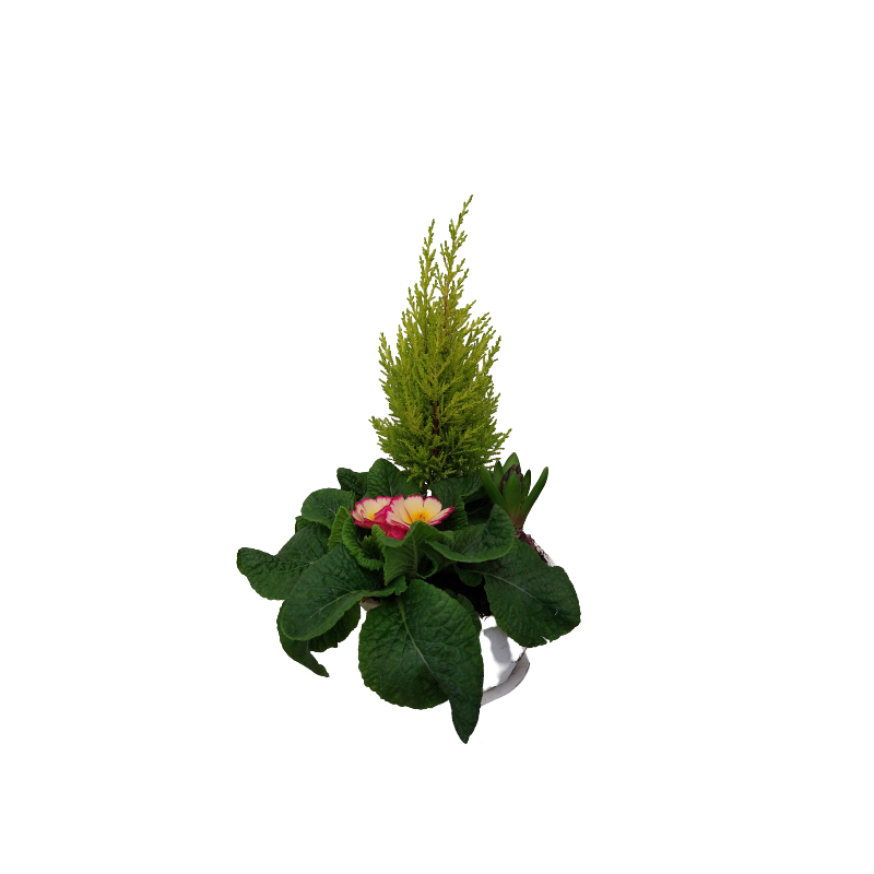 Composition avec 1 Sapin 9 cm / 1 primevère / 1 jacinthe