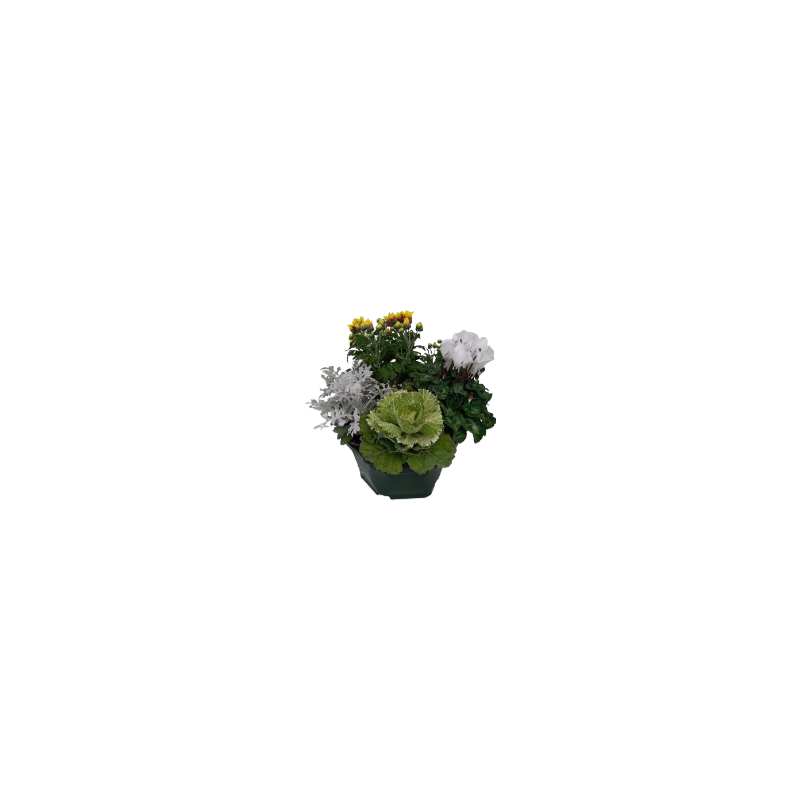 Composition extérieure 23 cm hexagone Chrysanthème / chou / cinéraire / cyclamen 10
