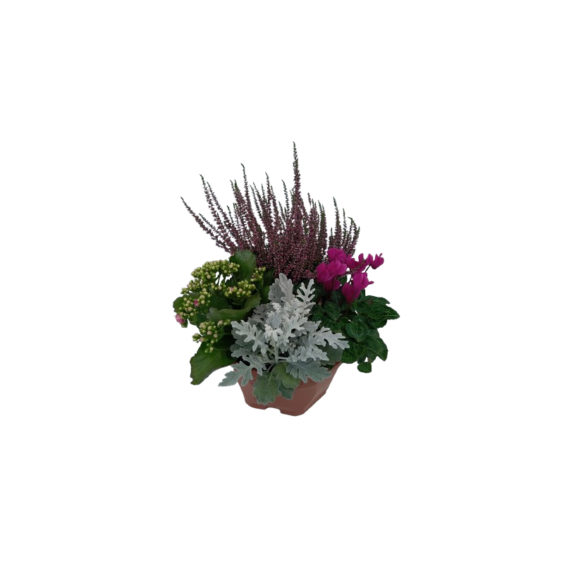Composition extérieure avec Calluna 10 / Cyclamen 10 / cinéraire / kalanchoe 10