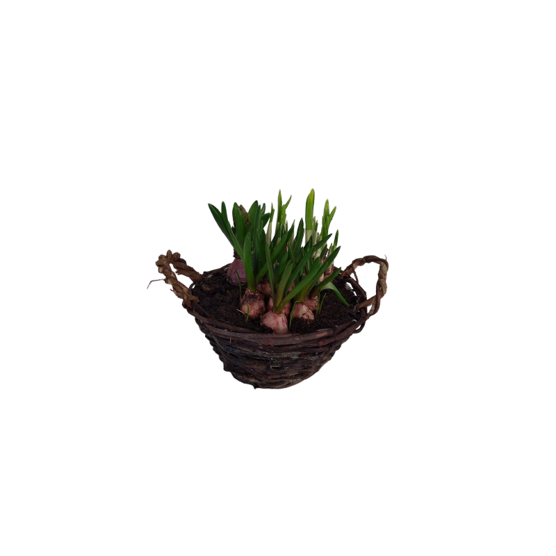 Composition extérieur panier osier 20 cm avec Narcisse 9 / muscari / jacinthe