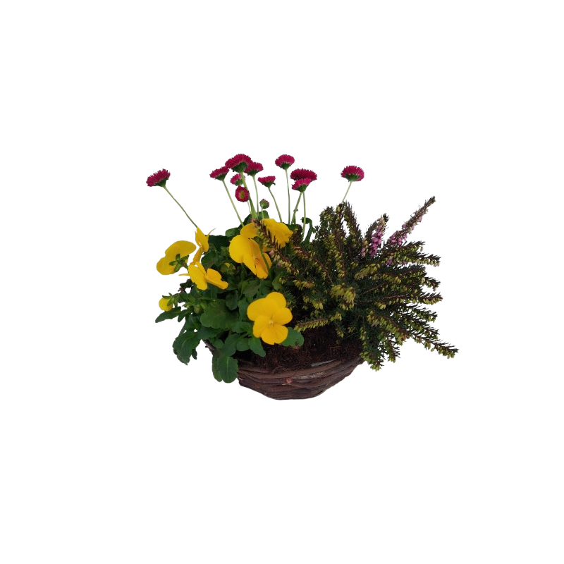 Composition extérieur panier osier 20 cm avec Pensée / Paquerette / darley 10