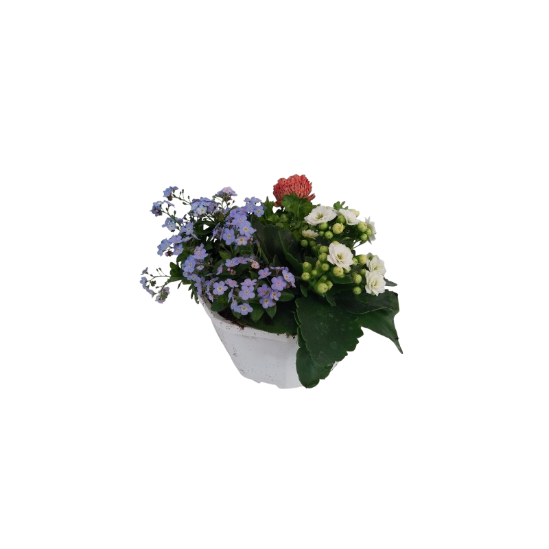 Composition extérieure avec Myosotis / Kalanchoe 8 / Renoncule 10 Prod.