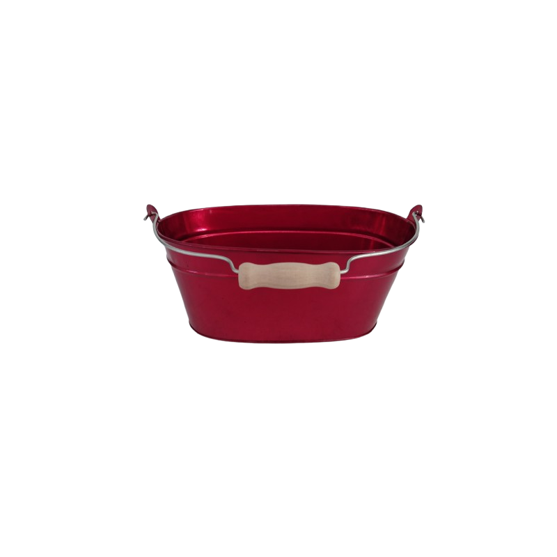 Jardinière ovale zinc rouge 20 X 11 cm poignée bois